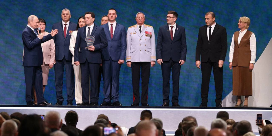 Евгений Филонов, член Ассоциации ветеранов СВО Калужской области, директор Серпейской школы, занял первое место в номинации «Мужество и героизм на благо служения Родине» за проект «Директор вернулся в школу». Награду ему вручил Владимир Путин.