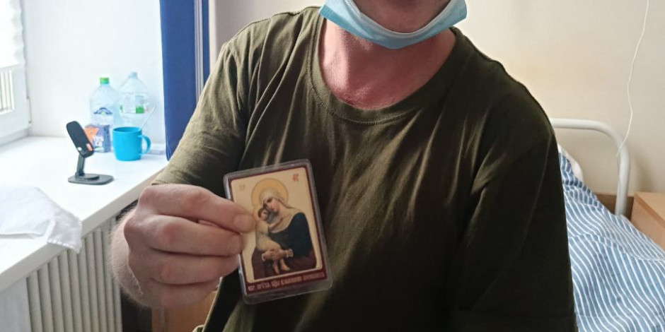 «Был сильный артобстрел под Купянском. Икона Взыскание погибших лежала у меня в кармане предплечья вместе с документами. Документы насквозь - а она целая, невредимая...и я за ней, получается. Через 4 дня после этого мы попали под сбросы квадрокоптера. Там получил ранение глаза. Меня эвакуировали. Лечение идет, врачи обещают спасти зрение. Икона Богородицы теперь всегда рядом со мной», - рассказал Сергей.
